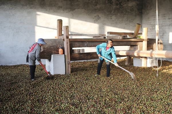 錦屏縣云豐油茶種植農(nóng)民專業(yè)合作社負(fù)責(zé)人吳池平說:“往年的油茶樹都是十幾年的老樹,掛果產(chǎn)量較低,今年經(jīng)過改良過后,畝產(chǎn)可達(dá)1200多斤,產(chǎn)值大概在46.2萬元左右。現(xiàn)在采茶果的工人有20人左右,已經(jīng)采摘10多天了,預(yù)計(jì)撿籽還要撿一個(gè)月時(shí)間。”